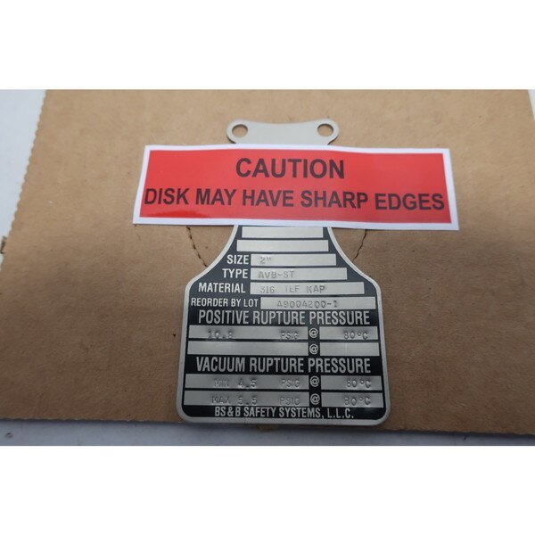 Stainless 10.8Psi 2In Rupture Disc, Bs&B, Mfr#: AVB-ST