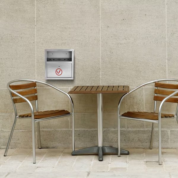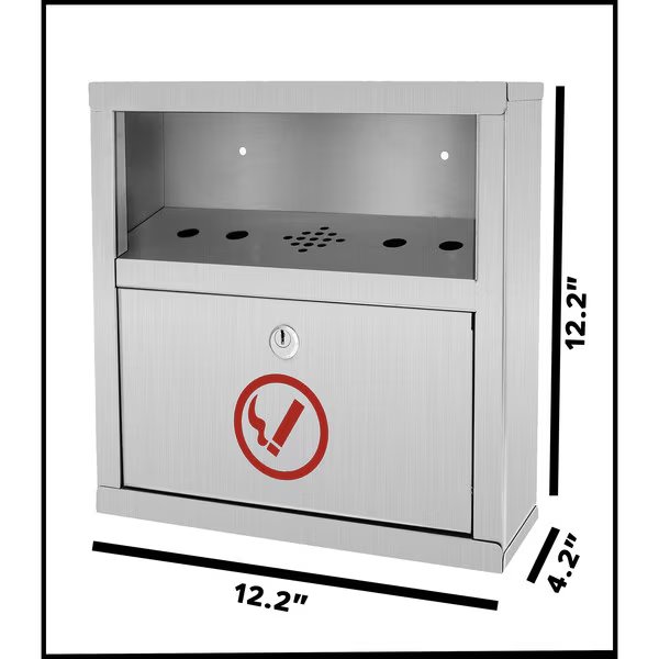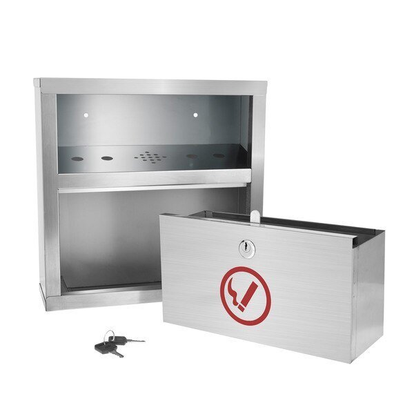 The Alpine Industries Quick Clean Wall Mounted Cigarette Disposal Station is the perfect solution to reducing litter in public areas and at entrances to smoke-free facilities. Discarded butts fall through four access holes into the galvanized steel interior bin with baffle opening that provides extra protection from weather. Emptying the bin via a lock-equipped door mounted with a piano hinge for long-term reliable performance in any outdoor environment.