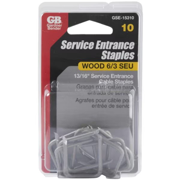 Attach large diameter cable to wood surfaces with the Gardner Bender 138 in x 1316 in steel service entrance cable staples for 63 SEU cable 10 pack These staples feature offset legs to prevent wood splitting and a diamond head for easy hammering