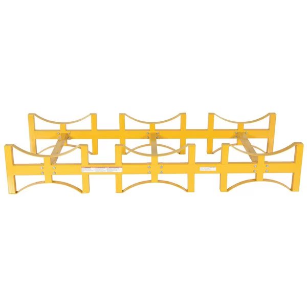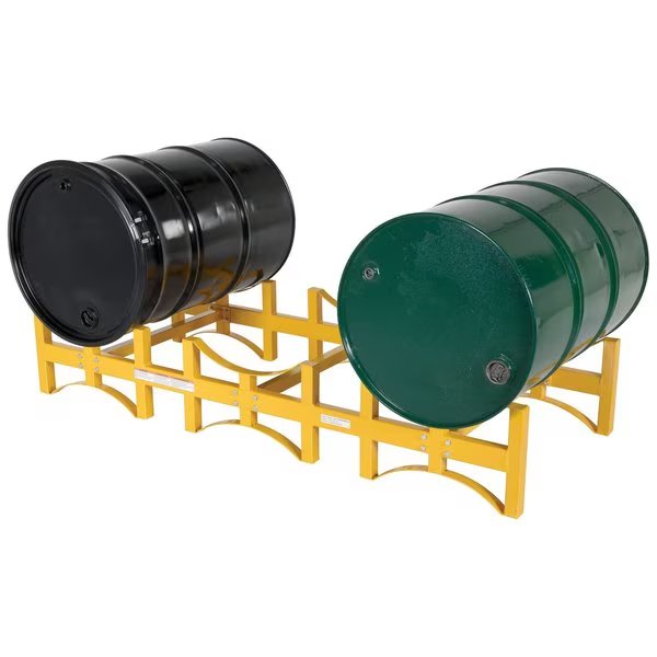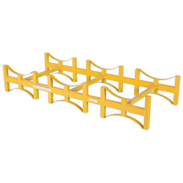This steel drum rack has four-way fork truck access. Not recommended for stacking more than four (4) racks high. All steel construction with formed steel cradles. Bolt together assembly with hardware included.