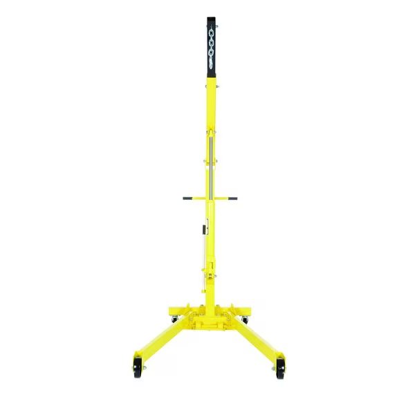 A portable shop crane engine hoist is great for hundreds of lifting applications. It features a telescopic boom with four settings for different lifting heights and capacities. Boom is raised and lowered with a manual hydraulic hand pump. The high-capacity hydraulic cylinder provides faster lifting action and features a large diameter ram to withstand angled loads when lifting. Includes two (2) rigid and two (2) swivel casters for portability. Heavy-duty steel construction and painted finish. The unit has a folding design to help aid in storage.