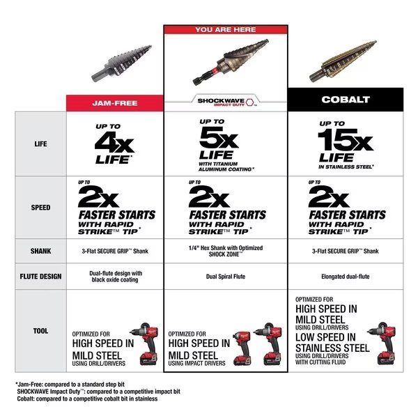 | Drill Bit Sizes Included | 1/8 in, 3/16 in, 1/4 in, 5/16 in, 3/8 in, 7/16 in, 1/2 in, 9/16 in, 5/8 in, 11/16 in, 3/4 in, 13/16 in, 7/8 in, 15/16 in, 1 in, 1 1/16 in, 1 1/8 in |