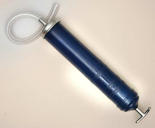 Suction Gun, Capacity 18 oz, Hose Length 12 in, Barrel Color Blue, Fill Type Suction Fill, Tube Color Blue, Tube Material Steel, Overall Length 26 in, Flexible Tube Yes, Hose Type Flexible