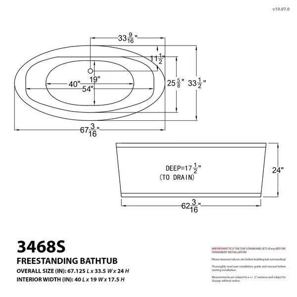 Suisse 34 x 68 Oval Freestanding Air Bathtub, Atlantis Whirlpools, Mfr#: 3468SA
