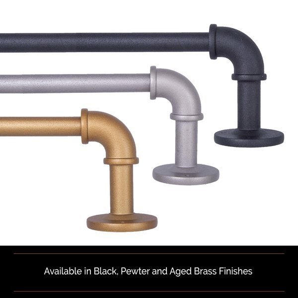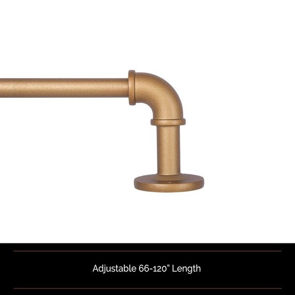 The textured aged brass finished industrial styled telescoping pipework steel rod is adjustable from 66-120” to fit a variety of window sizes and projects 3.75” from the wall. Use on larger windows in larger rooms, like your bedroom, dining room, or living room to hang light, medium, or heavyweight curtains. It is ideal for hanging curtains with grommets and can be used with clip rings. Pair with Sun Zero curtain panels (sold separately) to maximize energy saving, light blocking, and noise reducing features.