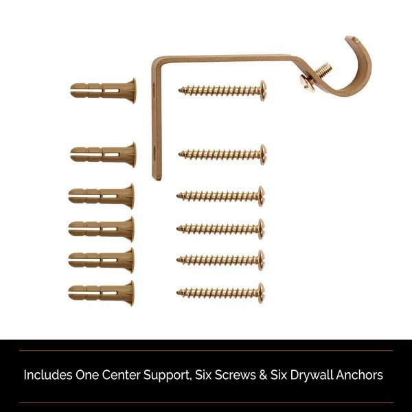 Room Darkening Rod Set Includes: one telescoping steel curtain rod with two mounting brackets, one center support, screws, drywall anchors, and installation instructions.