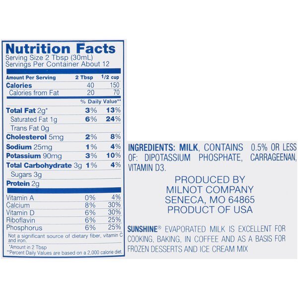 Sunshine Evaporated Milk 12 oz. Can, PK24, Sunshine, Mfr#: 10075300005076