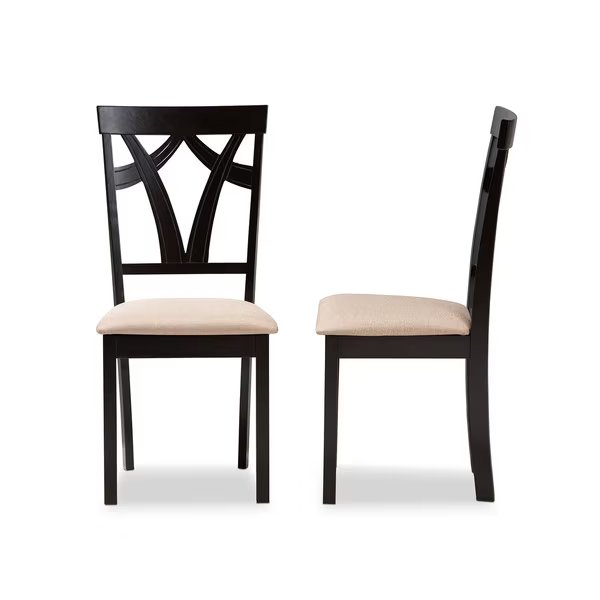Sylvia Sand Upholstered and Espresso Brown Finished Dining Chair, PK2, Baxton Studio, Mfr#: 149-8961