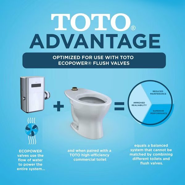 TOTO's TORNADO FLUSH Elongated floor-mounted ADA-compliant bowl exemplifies eco-friendly cleanliness and power in commercial spaces. Engineered for optimal performance along with the TOTO ECOPOWER flush valve, the toilet offers superior performance while saving water. Newly redesigned, this bowl features TOTO's TORNADO FLUSH, a rimless, hole-free design with dual-nozzles that create a centrifugal washing action that assists in rinsing the bowl more efficiently. TOTO's Universal Height allows for a more comfortable seat position across a wide range of users. The toilet bowl can be used in 10 to 12 inch rough-in installations and is WaterSense certified. Includes bowl and bolt caps. Flush valve purchased separately.