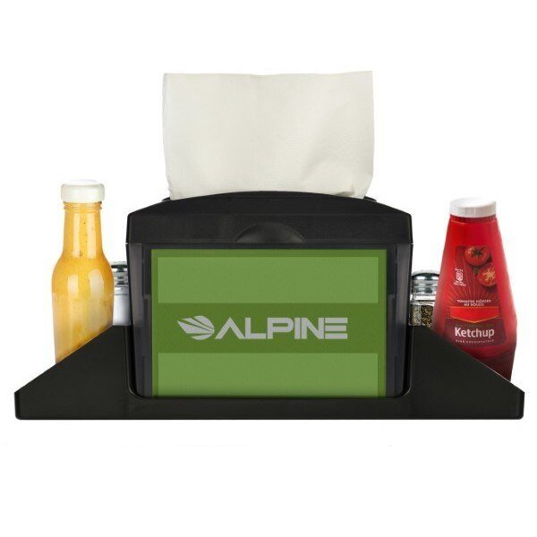 The Alpine Industries Tabletop Interfold Napkin Dispenser allows for quick and easy dispensing anywhere. It features a unique advertising insert space so that you can display information about specials, or events, making it perfect for restaurants, cafes, and bars. This is a multi-functional dispenser is also space-saving and efficient, equipped with a durable internal push plate that allows for smooth and easy dispensing interfold napkins. Also includes a caddy which can other items.