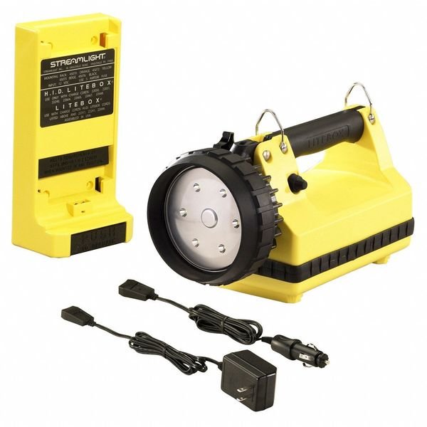 Industrial Lantern, Battery Size Proprietary, Includes Batteries Yes, Number of Batteries 1, Rechargeable Yes, Includes Charger Yes, Body Material ABS, Maximum Beam Distance 126 m, Maximum Brightness 615 lm, Run Time at Maximum Brightness 8 hr, Number of Light Output Modes 2, Charger Style Included AC/DC Charger Cords, Battery Chemistry Lead Acid, Beam Color White, Beam Focus Fixed, Beam Pattern Flood, Drop Rating Not Applicable, Handle Shape Rectangular, Includes Secondary Light No