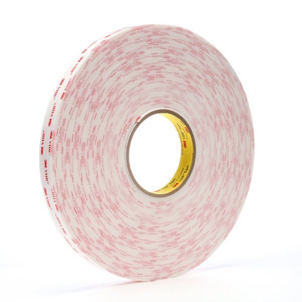Dream, Design, Deliver with 3M VHB Tape 4950. It is a white, 0.045 in (1.1 mm), general purpose acrylic adhesive with a firm foam core. It can replace rivets, welds and screws. The fast and easy to use permanent bonding method provides high strength and long-term durability. It offers design flexibility with its viscoelasticity and powerful ability to bond to a variety of surfaces.