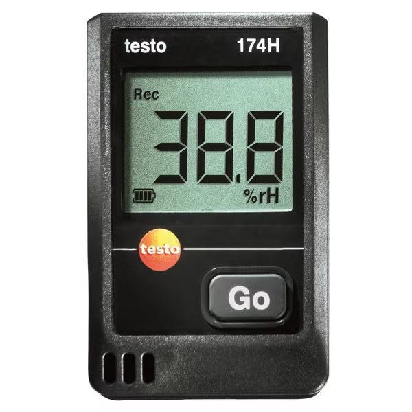 The Testo 174H mini temperature and humidity data logger has a large display and alarm indication that makes it capable of monitoring air temperature and relative humidity levels at all times. This temperature and RH measurement logger is long lasting for continuous use and has a high accuracy. The 174H mini temperature and humidity data logger kit includes a USB interface for data transfer and has free software available as a download for easy analysis.