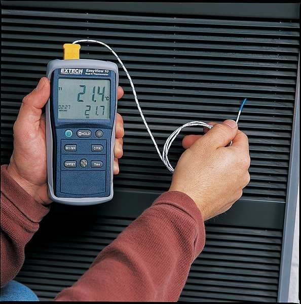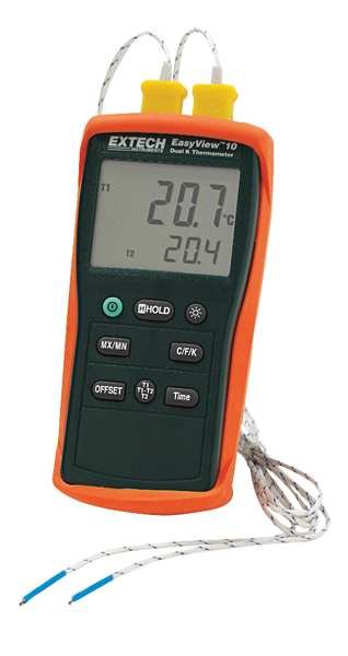 Thermocouple Thermometer, 2 Input, Extech, Mfr#: EA15