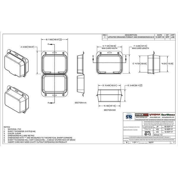 Thermoform-CLAMSHELL-#302-6.562-7.562-4.750-6.438-3.469-0.0175-CLEAR, 250PK, Visipak, Mfr#: 302TF