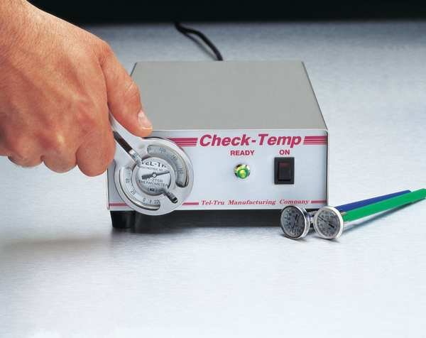 Thermometer Calibrator, Field Metrology Well, Tel-Tru Check-Set, Temperature Set Points 160 Degrees F, Cold Block Temperature Range 160 Degrees F, Number of Set Points 1, 3 1/16 in H x 6 5/8 in W x 10 7/8 in D