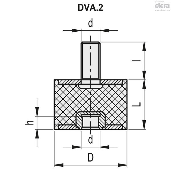 Threaded hole and threaded stud, DVA.2-50-40-M10-28-70, Elesa, Mfr#: DVA.2