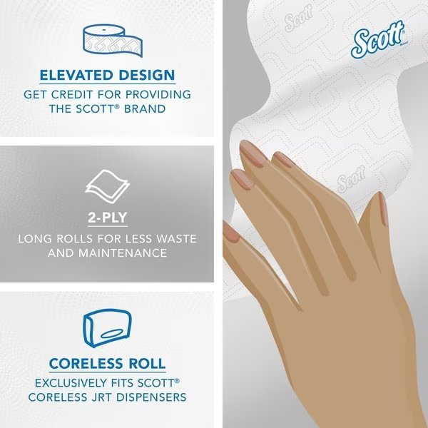 Scott Essential, Jumbo Coreless, 2 Ply, Continuous Sheets, White, 12 PK, Kimberly-Clark Professional, Mfr#: 07006
