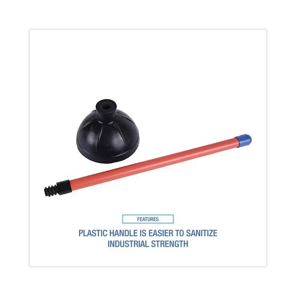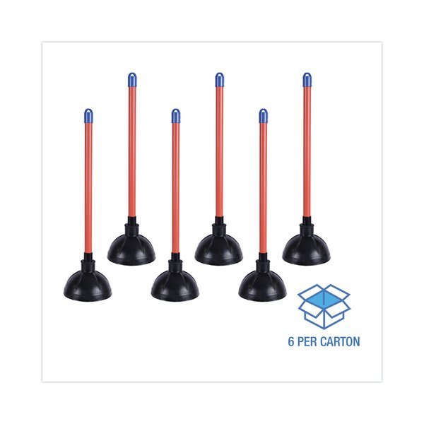 Toilet Plunger, 18" Plastic Handle w/ 5 5/8" Dia Bowl, Red/Black, PK6, Boardwalk, Mfr#: BWK09201