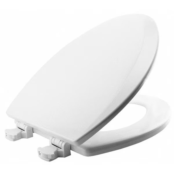 Elongated Toilet Seat with Cover, Closed Front, External Check Hinge, 2 in Seat Ht, Wood, White, Bemis, Mfr#: 1500EC 000