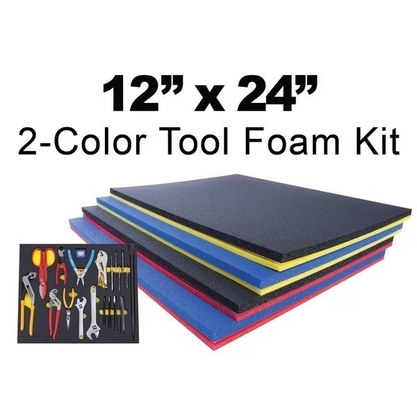 Tool Box Foam Insert 2 ColorTool Shadow Foam is a very effective way to achieve Visual Management of your tools. These 2- Piece kits will allow the use of contrasting foam colors to show anyone visually that tools or items are missing. When used properly searching will be reduced drastically and allow you to focus on other value adding tasks.BENEFITS OF TOOL FOAM ORGANIZERS* Easily identify misplaced tools.* Save time! Reduce searching.* Saves money due to lost tools!* Shapes make it easy for anyone to return tools.Top piece - 1/2 Inch ThickTop piece comes with white PSA Peel Stick Adhesive for tracing toolsBottom Colors - 1/4in Inch ThickKit includes one top and one bottom One Drawer