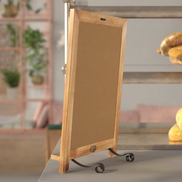 Leave reminders for family, post the weekly menu, or announce special events with this freestanding magnetic chalkboard for the table or countertop. The non-porous porcelain steel chalkboard surface cleans easily with a damp cloth so you can change your message as often as you like. Not only does this vintage board look great, the foldable metal scrolled legs allow you to convert it to a wall mounted message center. Made from solid pine wood construction and suitable for liquid or traditional chalk, this memo board is available in 5 colors and is the perfect size for any home or business.