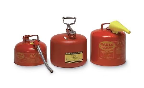 Type I Safety Can, Can Type Type I, DOT Approved No, Capacity 5 gal, Compatible Fluids Flammables, Color Red, Can Material Steel, Material Finish Powder Coated, Hose Outside Diameter Not Applicable, Included Hose/Funnel Not Applicable, Can Diameter 12 1/2 in, Overall Height 13 1/2 in, Includes Faucet No, Faucet Channel Diameter Not Applicable, Overall Width Not Applicable, Cap Features Self-Closing, Footprint Shape Circle, Includes Flame Arrestor, Squeeze Handle, Includes Flame Arrester Yes