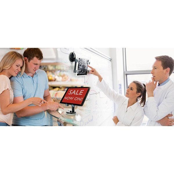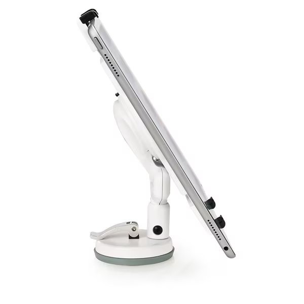 Universal Tablet Suction Stand for most 7"-12" tablets with silica suction cup for most surfaces, White