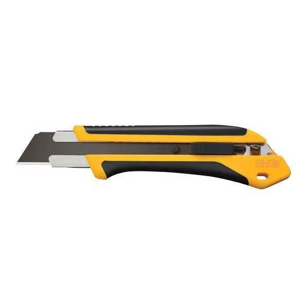 Whether you're a tradesperson or an artist, the OLFA XH-AL Utility Knife is the tool for you. The blade locks automatically and can be retracted to protect your fingers. The acetone resistant handle provides superior grip and allows you to work comfortably. This black/yellow utility knife has a contoured handle made of elastomer, fiberglass, and polypropylene. It has a carbon steel blade that retracts into its casing for safety purposes. The 7 3/8 in L. utility knife has an overall width of 2 in., making it easy to hold and manoeuvre as needed. If you want a sturdy utility knife that won't slip out of your hands, this OLFA XH-AL is the one for you.