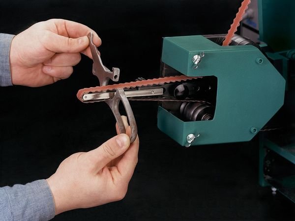 Versatility Grinder, Product Type Belt Grinder, Voltage 150 V, Phase Single-Phase, Horsepower 1.5 hp, Belt Width 2 in, Belt Length 72 in, Belt Speed 5,400 SFPM, Speed Settings Fixed, Number of Speeds 1, Dust Collection Port Size 4 in, Features For Use on Castings and Forgings, Turbine Blades, Medical Implants and Investment Castings, Includes Through-Housing 4 in Vacuum Port for Dust Control with Optional Vacuum Scoop