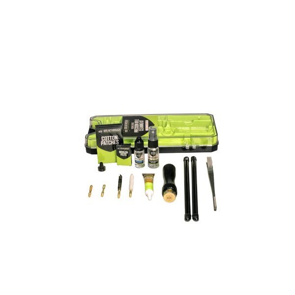 Our compact Breakthrough Clean Technologies Vision Series .243 / 6mm Rifle Cleaning Kit offers you everything you need to ensure a thorough clean. Its plastic tray keeps all the various pieces of the kit organized neatly inside a durable case that acts like a mini toolbox. These cleaning kits come with cleaning rod sections, various hard bristle nylon brushes, jags, patch holders, and cotton patches. Also included is our durable and detachable aluminum handle with knurling for an easy grip and our mini bottles of Breakthrough Military-Grade Solvent and Battle Born High-Purity Oil and Battle Born Grease. INCLUDES: Rotating Aluminum Handle, 4 Coated Rods, Nylon Bore Brush, Cotton Bore Mop, Double Ended Brush, Brass Patch Holder, Patches, Brass Jag, Box of Woolen Felts, 12mL Bottle of High Purity Oil, 15mL Bottle of Gun Solvent, .25 oz of Gun Grease. GUN RANGE ACCESSORIES: The stiff nylon brushes include a rugged brass core & quickly attack heavy carbon build up to ensure thorough cleaning of your rifle. The 100% cotton mop is soft, washable, & effective in cleaning your bore. GUN CLEANING KIT: 100% cotton knit gun patches come in pre-cut squares & make it easy to clean your firearm before & after a trip to the gun range effectively. We've also included our detachable aluminum handle with knurling for an easy grip. GUN OIL: The 12 mL. bottle of Battle Born High Purity Oil is a general-purpose & low-viscosity lubricant that is user-safe. It helps protect against rust, wear & withst& extreme temperatures ranging from -90 degrees to +417 degrees Fahrenheit.