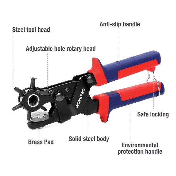 WORKPRO W031300 Revolving Head Punch Pliers, Drop-Forged Carbon Steel Single Pack, Prime-Line, Mfr#: W031300