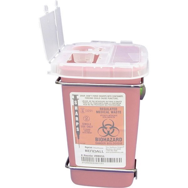 Nonlocking wall bracket is designed for use with 1 Quart Sharps Containers. Use wall bracket to free up valuable counter space. Durable bracket is made of steel.