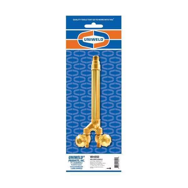 Welding Handle A Hose Connection, Compatible Fuel Type Any Fuel Gas, Torch Series WH550, Hose Fitting Size A, Inlet Connection Size 3/8 In.-24, Maximum Welding Thickness 1/4 in, Overall Length 7 1/2 in, Inlet Thread Direction Left Hand, Inlet Connection Type UNF, Weight 12.7 oz, Torch Style Victor, Compatible Cutting Attachment CA100, CA250, CA550, Body Material Brass, Features Accurate Rear Valve Gas, Oxygen Controls, Includes In.A In. Flashback Arrestors