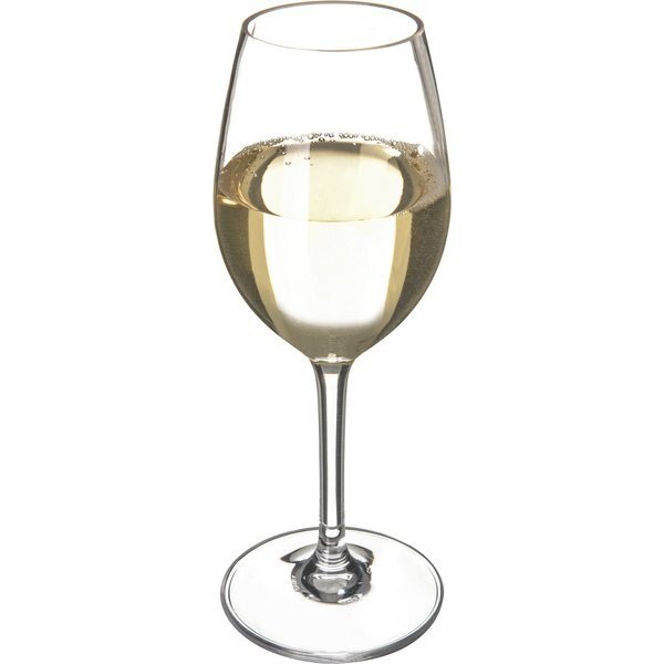 White Wine Glass, Product Type White Wine Glass, Color Clear, Material Polycarbonate, Bottom Diameter 3 1/4 in, Capacity 11 fl oz, Overall Height 8 1/2 in, Pattern Alibi, Package Quantity 24
