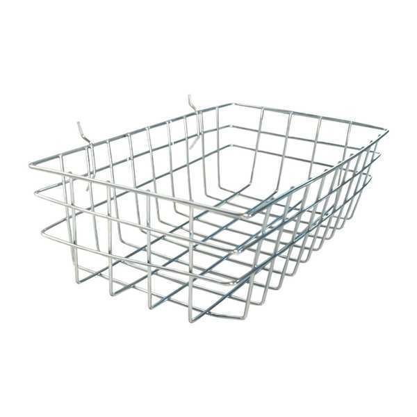 Wire Basket, 14 in, Number of Bins Not Applicable, Number of Hooks 1, Number of Pieces 1, Number of Rings Not Applicable, Overall Height 4 in, Overall Length 7 15/16 in, Overall Width 14 in, Not Applicable Hook Depth, For Channel Spacing 7 in, 1 in For Pegboard Hole Spacing, For Pegboard Hole Size 1/4 in, For Tool Type Not Applicable, Surface, Hanging Locking System, Circle For Pegboard Hole Shape, Steel, Silver, Zinc Plated, Not Applicable Accessory Type, Not Applicable, Not Applicable