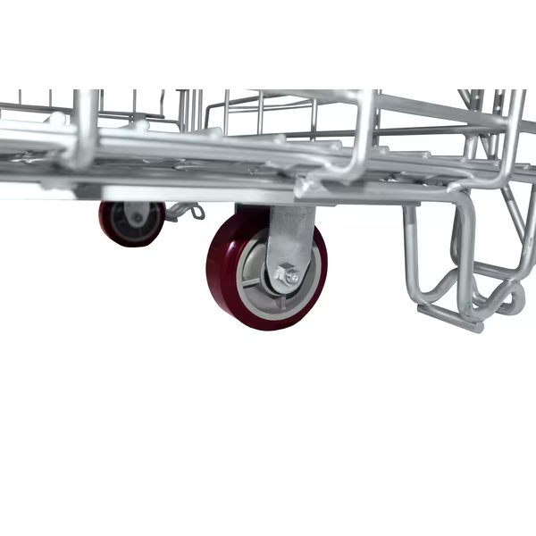 Wire Container 72x40x46H; Caster Pads; 5" Swivel Caster Duratough Wheel(Maroon/Gray); 5" Rigid Caster Duratoughl; Roller Bearings..