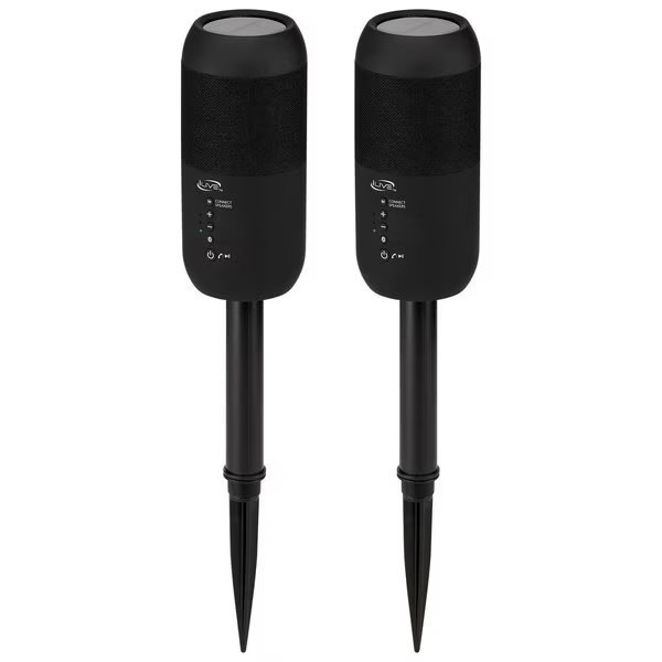 Enjoy 360-degree full-bodied sound whether you are indoors or out. These cleverly designed Bluetooth speakers include removable stakes so you can strategically place your music outdoors for optimal results. Pair two units together and have a backyard party regardless of the weather. The durable waterproof design ensures you can keep the party going wherever you take it.