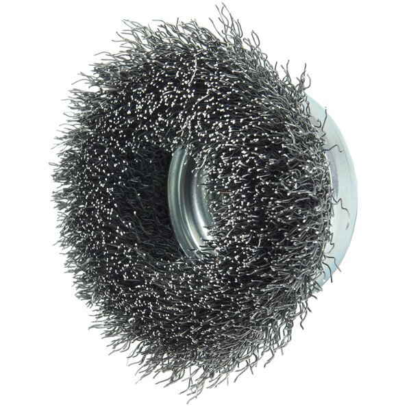 Wolverine 3" Crimped Wire Cup Brush provides flexible brushing action and cost effective performance in general purpose cleaning applications. 5/8"-11 nut for use on right angle grinders. Provides flexible brushing action and cost effective performance in general purpose cleaning applications. Suitable for right angle grinder tool usage. . . .