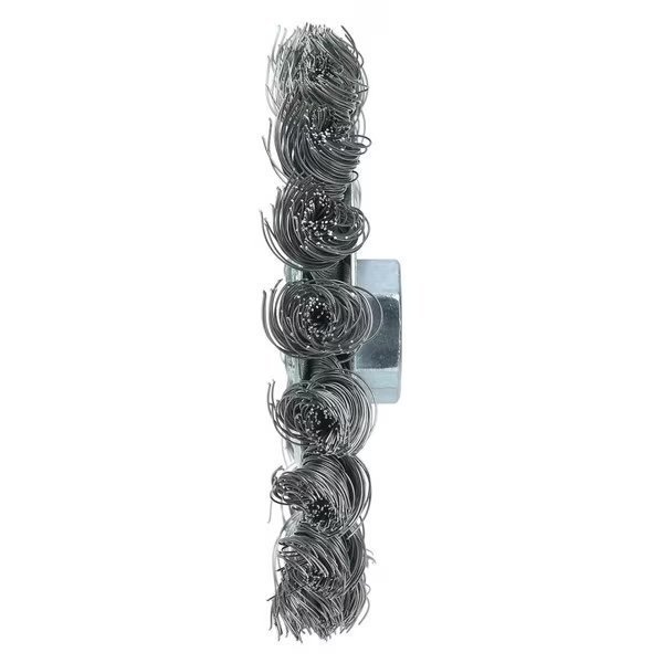 Wolverine 4" Standard Twist Knot Wire Wheel Brush provides an aggressive brushing action for general purpose deburring cleaning and surface preparation applications. Featuring Weiler's individual knot hole construction, these radial brushes are available in heat-treated steel, type 302 stainless steel and bronze wire for use in a wide variety of applications. 5/8"11" nut for use on right angle grinders. Provide an aggressive brushing action for general purpose deburring cleaning and surface preparation applications. Knot wire wheels with a threaded nut are intended for use primarily on small and large right angle grinders. Featuring Weiler's individual knot hole construction, these radial brushes are available in heat-treated steel, type 302 stainless steel and bronze wire for use in a wide variety of applications. . .