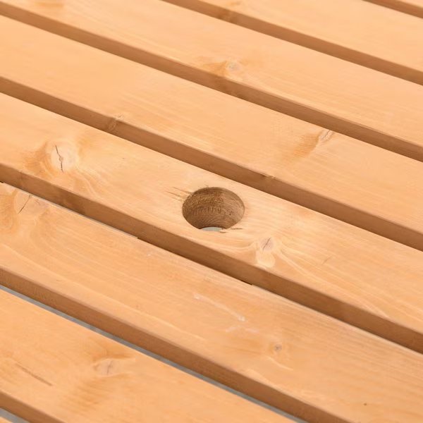 Gather around this comfortable picnic table for family outdoor meals. Solid wood composition offers durable resilience for continual outdoor use. For extra convenience, insert an umbrella in the center hole for sunlight shade and protection. Plus, when it comes to basic outdoor furnishing, this picnic table is what every outdoor area calls for to dine in warm outdoor weathers.