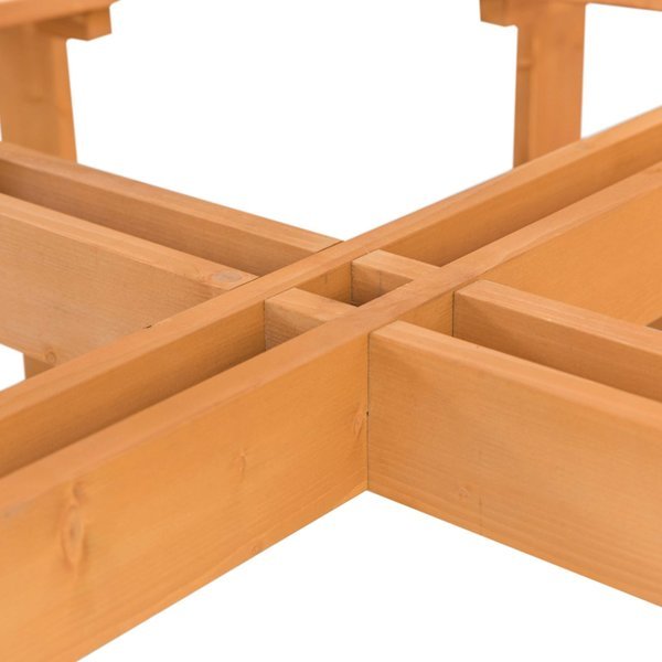 Wooden Outdoor Patio Garden Round Picnic Table with Bench, 8 Person - Stained, Gardenised, Mfr#: QI003903.ST