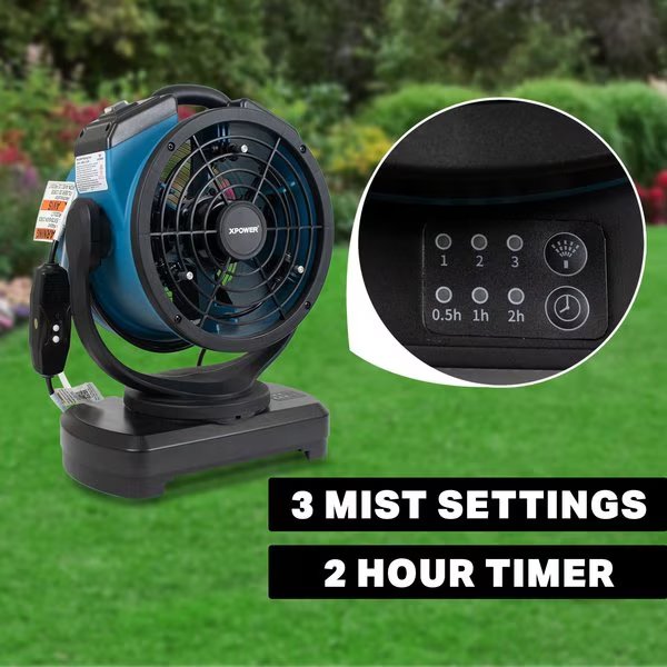 Wave goodbye to discomfort this summer and say hello to XPOWER’s FM-68W commercial outdoor misting fan. Beat the heat and stay cool by taking full control of your ambient temperature while keeping dust, pollen, and flying insects at bay. By combining high coverage with portability, this misting fan has plenty of outdoor applications and is even useful all year long for indoor drying and air circulation.